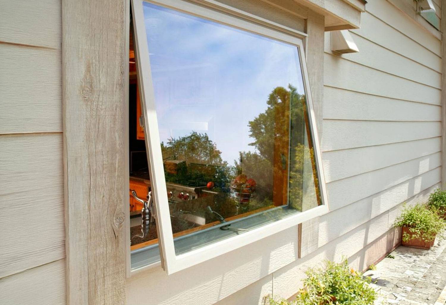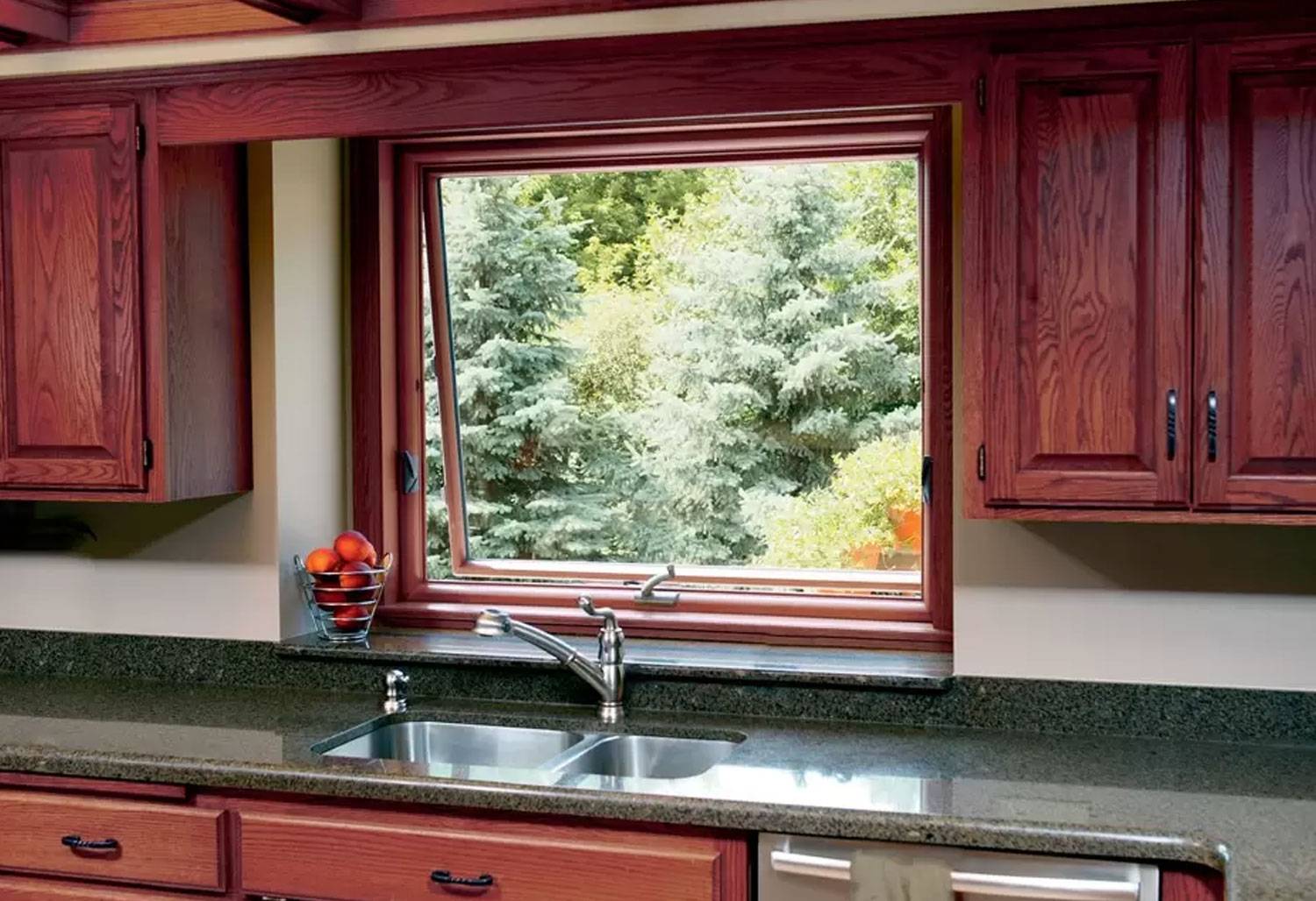 How does this work? Our awning windows open from the bottom with the simple turn of a hand-crank, allowing for the glass panel to act as an awning. Rainwater hits the glass panel, streaming to the ground rather than into your home.